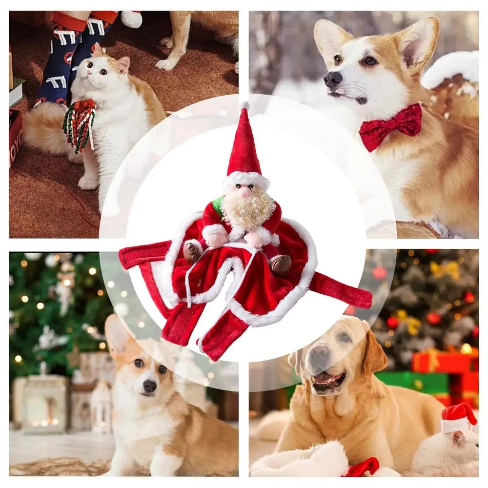 Christmas Dog Costume Santa Claus Clothes Riding Pet Cosplay Costumes Cosplay Costume Funny Dressing Up Outfit Clothes Suits Hat