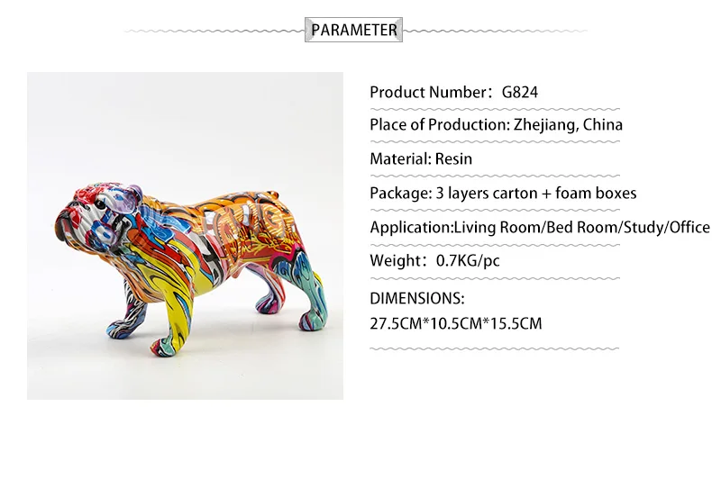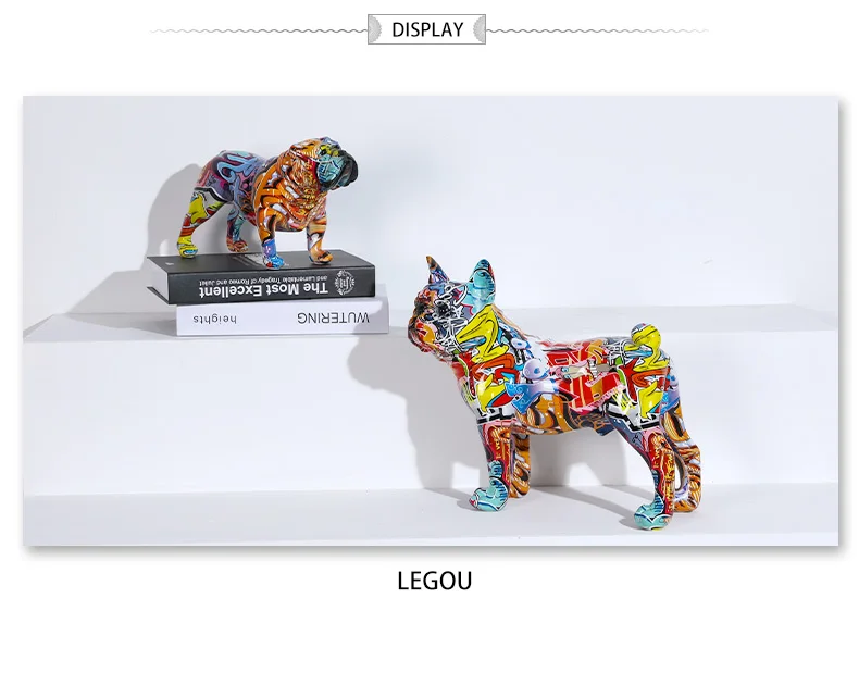 Creativity Bulldog Wholesale Graffiti Water Transfer Office Ornaments Printing Resin Bulldog Home Decor Modern Crafts