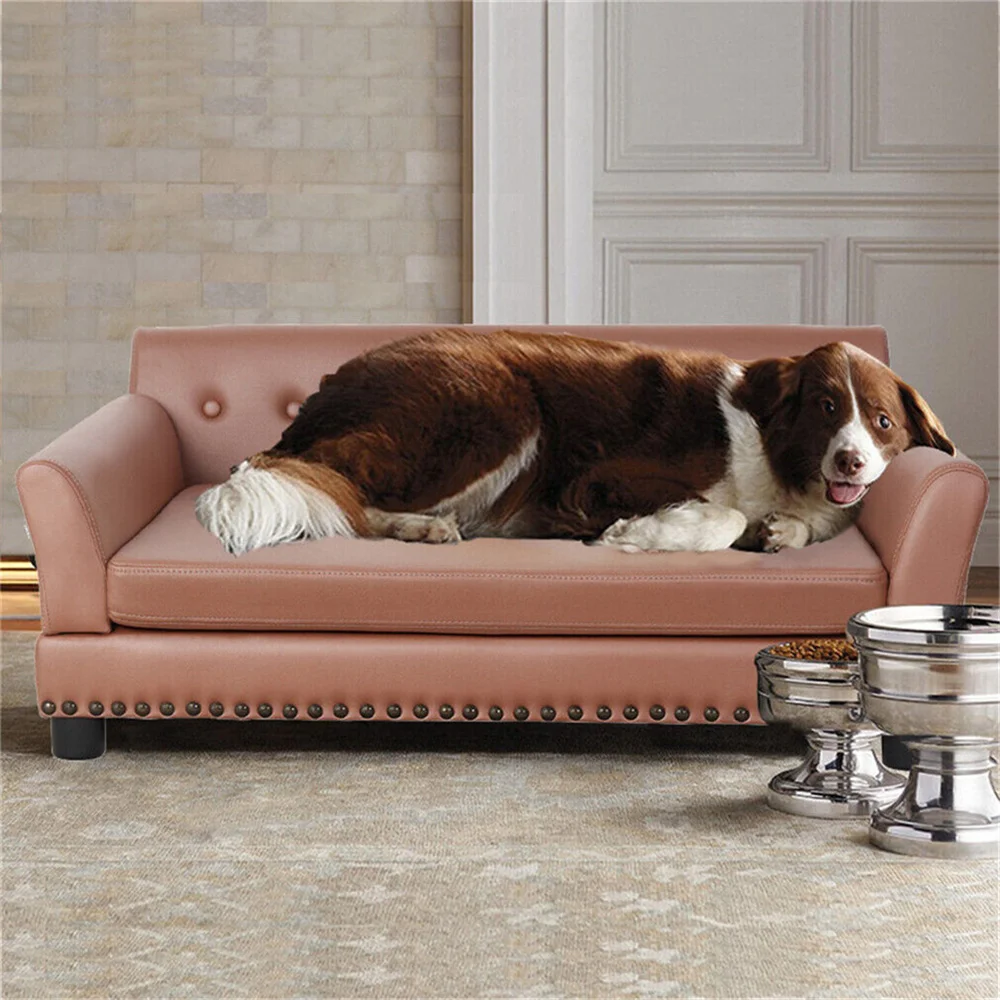 Luxurious Pet Sofa Bed - Our dog sofa combines durable composite board frame with high density sponge foam, covered with the popular leathaire fabric, ensures its coziness and nice modern look, comforts your pets well, adorned with rivet on the bottom edge for a high-end look, matches with your home decor or area