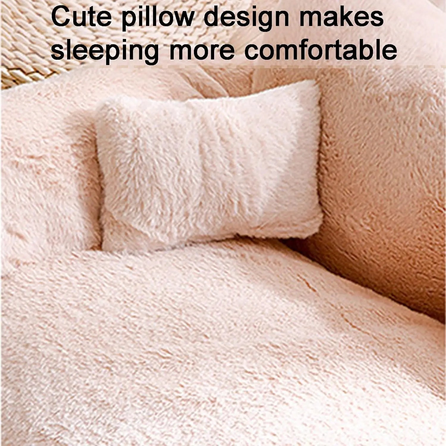 Plush Sofa Bed for Cats and Small Medium Dogs, Memory Foam Removable Washable Pet Sof, with Non Slip Bottom, Fluffy Pet Sofa Bed Puppy Sleeping Bed, Removable Washable Cat Bed for Indoor---