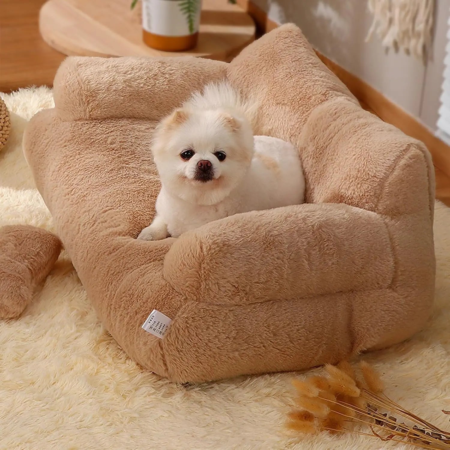 [Cozy & Comfort with Premium Material]Designed with a thoughtful 2:1 blend of chopped foam and super soft fuzzy faux fur, our pet couch provides optimal support while maintaining plush comfort.Made with super soft faux rabbit fur material, this pet couch is warm and comfortable, suitable for cats in every season.